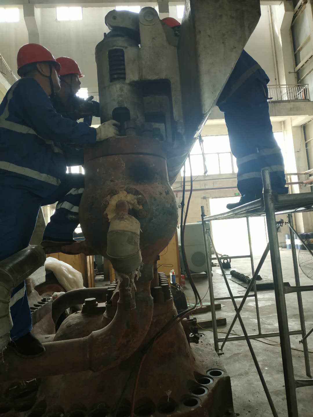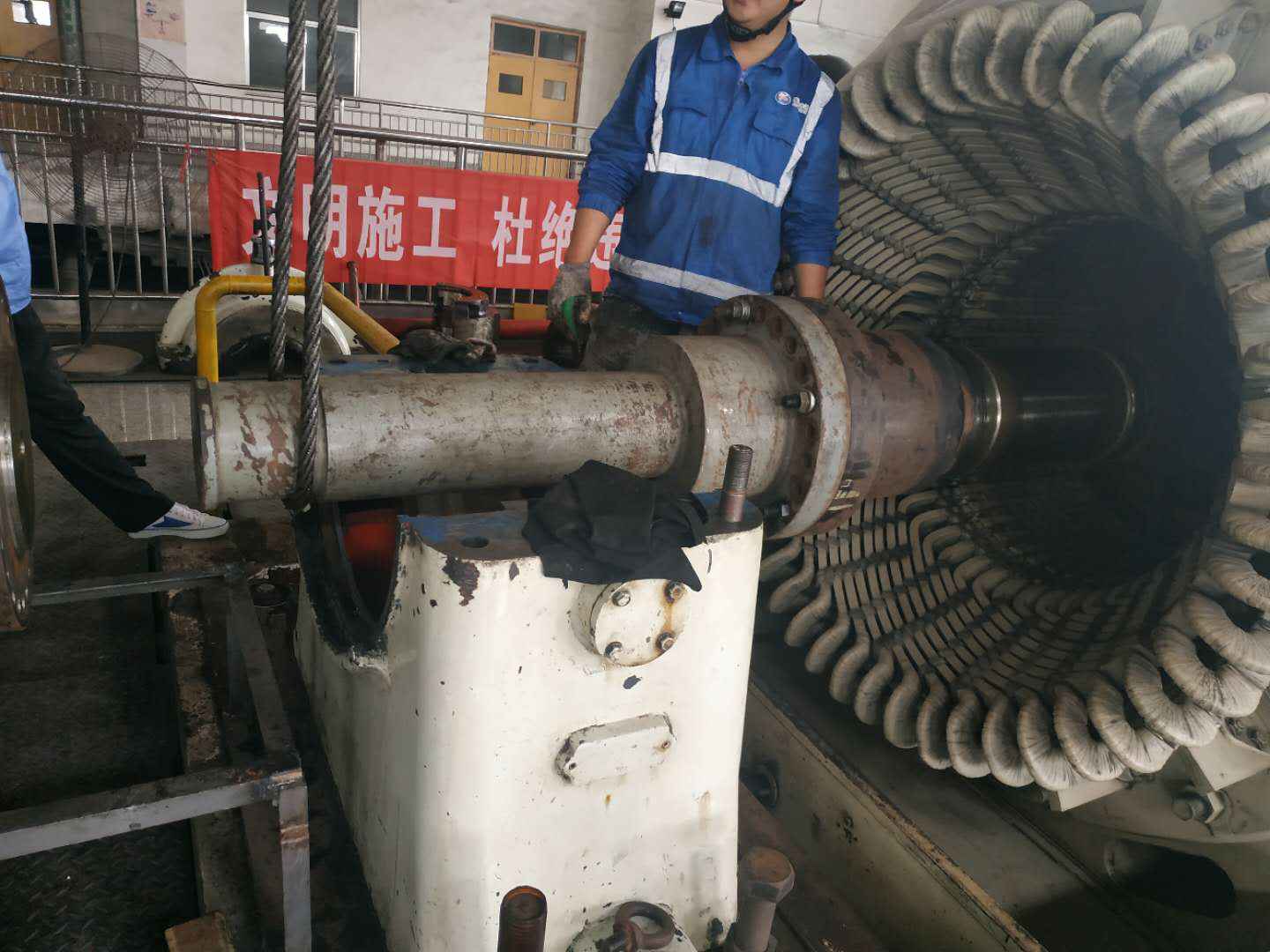 由长春圣安人工智能平台有限公司承建的山东海能化学有限责任公司机组B15MW背压式汽轮机组(原 C25抽汽凝汽式机组)大修工程现已完成凝结水泵、油站检修工作,发电机前后轴承座基础垫铁研磨工作,目前蒸汽室螺栓的拆卸工作及发电机定子与转子的清理工作陆续启动,下气缸吊隔板工作也在稳步进行中。
